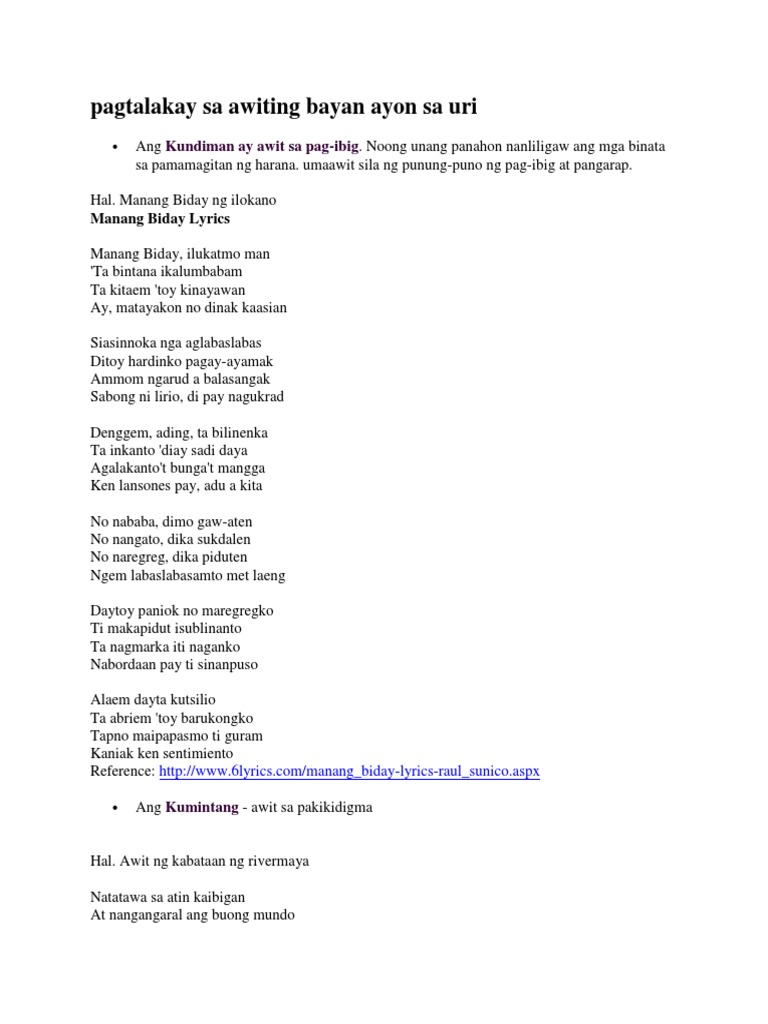 Hilirawpamatbat - pag-iinuman 23. MGA URI NG AWITING-BAYAN. 39 minutes ago by.