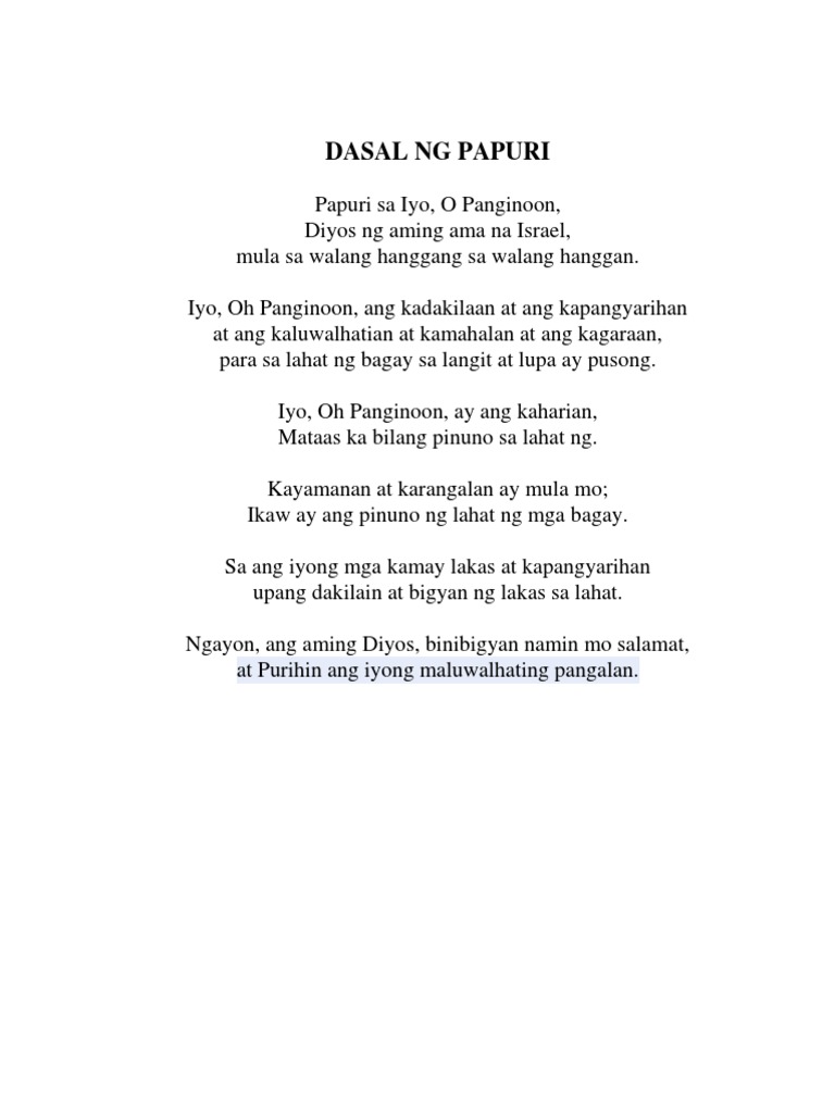 Sa aming puso sa aming buhay papurit pagsambay iaalay. Katapatan Mo o Diyos tunay at Dakila Ang pag-ibig Moy wagas at walang kapantay Sa aking puso sa aking buhay Papurit. Habag na di nagmamaliw.